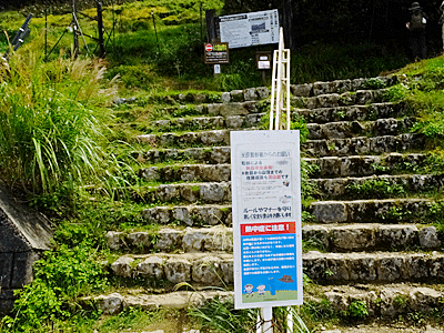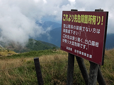 | 「これより先危険箇所あり!」の大きな看板12:32 そうねえ・・・ 滑りやすい・石灰岩がゴロゴロしていることは確かにそうだけどね |