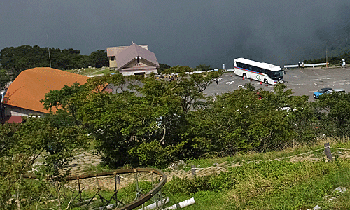 | 天気予報に傘マークが無い日を探していたら、 丁度、今日28日がぴったり! このバスは予約制なので電話をすると、 「空いていますからどうぞ」の返事 多治見駅発7:58に乗る予定だったが、 道路が空いていたので早めに着き、1本前の7:40に乗車 名古屋名鉄バスセンターだと思い込んでいたので (本当は、「名阪近鉄バス・JRハイウェイりバス乗り場」だった) 乗り場を探してウロウロ 予定の列車だったら乗れなかった! 9:00発のバスは8〜9割の混み具合 さあ、後は乗って着けば伊吹山山頂駐車場だ・・・と安心していたら 名神の集中工事のため、ノロノロどころか じっと停まって待っている方が長いくらい (8/26〜9/16まで:下調べの不備!) 一宮ICまで1時間以上かかった・・・ 養老SAでトイレ休憩後、ドライブウェイに入ってやっとホッとした 結局、着いたのは11:39(予定は「10:45頃」なので1時間弱の遅れとなった 3コース全部歩くつもりだから、のんびりは出来ない・・・と思い、 バスの中で行動食を食べ、靴紐も結んで 帽子やストックなどの身支度も終えて、 到着を待っていた 「着いた・降りた・歩き始めた」の素早さで、 まずは西登山道へ 後ろを振り返って、たまたま一緒になった「植物の会」の仲間をパチリ |