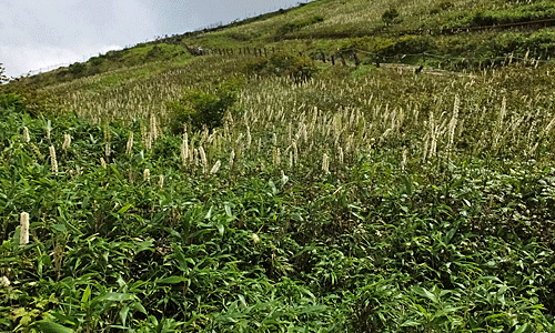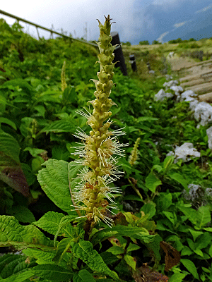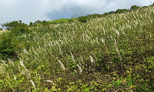 | ↑ まだまだサラシナショウマの大群生 惜しいことに、暑さのせいか?少雨のせいか? 葉っぱが茶色に変色していること・・・ |