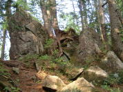 巨石群のひとつ 岩に根が覆いかぶさりながらも 大きく育っているのに驚く |