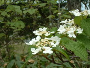 オオカメノキ 下の方は花びら(装飾花)が 全部落ちていた 上の方は。まだまだきれいだった |