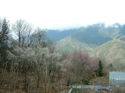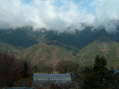 | 昨日は1日中雨 今朝は打って変わった いい天気になるはず タクシーでここまで690円 見上げる山には谷間に雪が少々 |