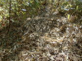行きに偵察しておいた鹿の寝床 笹がびっしり敷き詰められ 前回よりは小さくなっていたが 体の丸みに凹んで快適そう 帰りにもう1度見ると 日が当たってぽかぽかと暖かくなり 今日の夜はほかほかお布団で眠れそう |