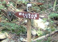 「下麻生大牧谷方面へ」の標識 ここまでは比較的緩やかな沢沿いの道 登山口から25分ほど ここから尾根へ上がる急登の道になる 岩場もある |