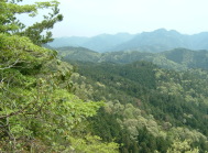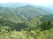 岩場を登りきった所 風が気持ちいい〜 新緑にうずまった山々 |