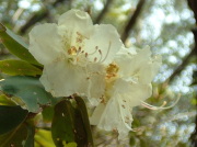 | ロープが垂れている第2の岩場を 登る途中に咲いていたヒカゲツツジ このルートでは、すでに終わっている ヒカゲツツジがほとんど 細長い葉っぱはいたるところにある |