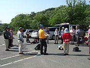 | 駐車場でミーティングと準備体操 総勢21名 |