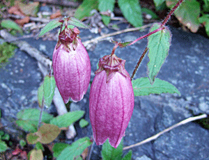 | ヤマホタルブクロ よく似たホタルブクロとは 萼片の間が膨らんでいるかどうかで 見分ける 右 ヤマホタルブクロの『膨らみ』 疲れていたり、ザックが重いと 屈んで観察するのが苦しいので デジカメに撮っておいて あとでパソコンで拡大してみると一目瞭然 |