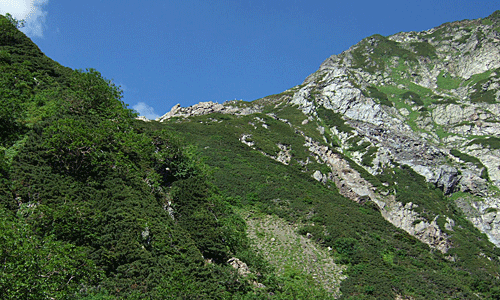 | 八本歯のコル方面を仰ぐ |