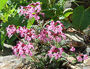 | クチバシシオガマ 丁度今が見ごろ ヨツバシオガマの変種で, 先が尖っている 南アルプスでは、この花のほうが ヨツバシオガマより多いとか |
