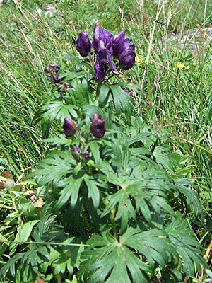 | ホソバトリカブト? 『北岳の高山帯、特に頂上付近の 岩礫地に特産する』キタダケトリカブトは もっと葉が深く鋭く切れ込んでいるらしい |