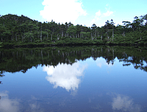 七ツ池 写真はこんなにきれいに写っているが 実際はそうでもない ロープが張ってあるので 七つまで数えることはできなかった |
