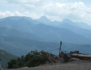 | 南八ツの眺め 左から赤岳・中岳・阿弥陀岳 |