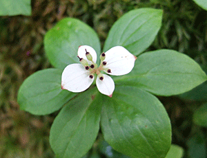 ゴゼンタチバナ ここだけまだ花が残っていた もう実になりかけている |