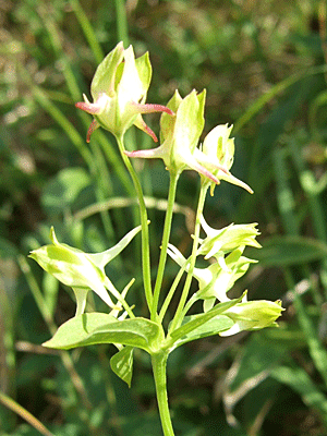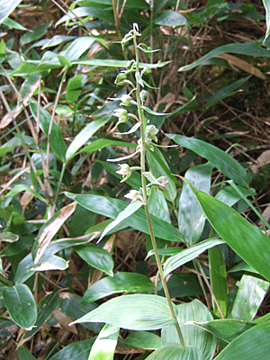 エゾスズラン (別名アオスズラン) 笹の中に 変わったラン科の花を見つけた カキランに似ているが 色が柿色ではない 葉が笹の葉そっくりなので ササラン・・・といって笑い合う 図鑑を見てびっくり カキランの仲間 カキランの隣にこの姿を見つけた |