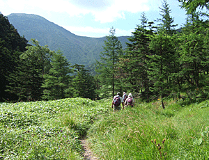 天祥寺原へ 双子池との分岐を過ぎて 天祥寺原へ |