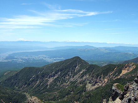 | 硫黄岳山頂で風もなく ガスもなく、その上梅雨の最中で こんなに展望がいいなんて なんというラッキーなこと! |