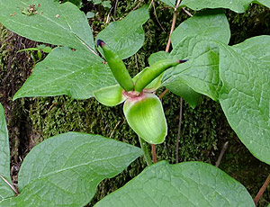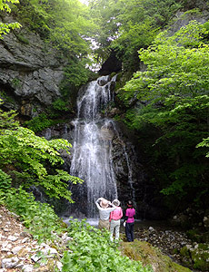 | 新緑とうるし滝 この辺りまでのヤマシャクヤクは ほとんどが種になっていた |