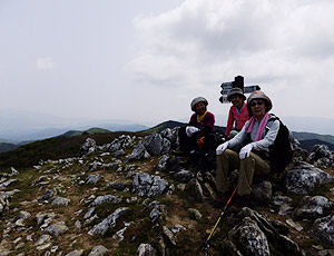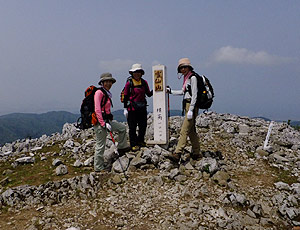 霊仙山本峰に着いた 今年はこれで2回目 日陰は無いが、吹き上がってくる風が気持ちいいし、 時間もまだ早いので ここで大休憩 |