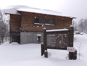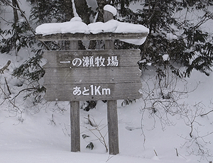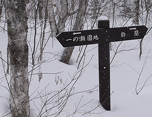無雪期に来たことの無い者ばかりなので 雪の無い風景がさっぱり分からない 左「一の瀬」 右「野営場」 山の方向へは「休暇村ロッジ」となっている |