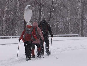 | 雪が降る中、出発 まずは一の瀬園地を目指す |