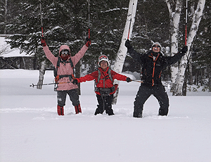 踏み跡のない真っ白な雪を前に 思い思いのポーズでパチリ |