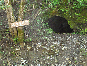 | 土石流の前は、 登山道から見上げるような高さにあった穴が 今では目の高さになっている そこまで土石が積もったということ |