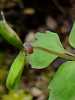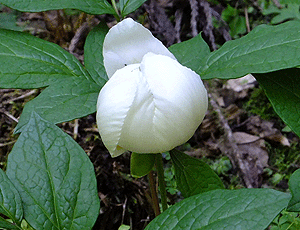 | ヤマシャクヤク:ボタン科-2 2輪のうちの1株 今まさにほころび始めようとしている (帰り道では、ぱっと開いていた) |