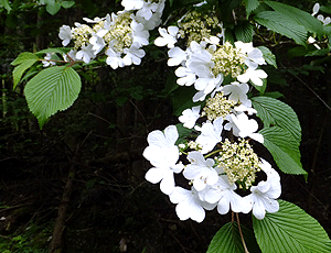 ヤブデマリ:スイカズラ科-1 登山口へ来る際、この白い花を見つけた 帰り際、車をとめてもらってパチリ |