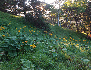 | マルバダケブキ:キク科 シカが好まないから残っているんだって |