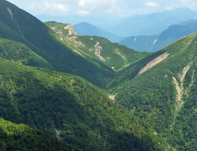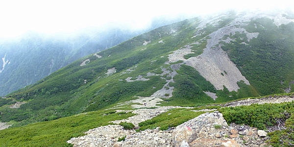 | 明日、赤石岳へ登る道が見える |
