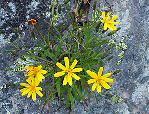タカネニガナ:キク科 岩の隙間にしっかり根を下ろしているのに感心 |