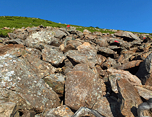 こんな岩ガレを延々と登って・・・→ (登った所が「百阨ス」だろうと思っていた) |