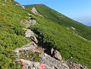 | これが下降点の印らしい (「小赤石岳の肩」かな?) |