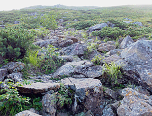 | ザレの狭い道かと思ったら、岩ガレでかなり幅が広い |