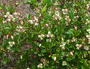 | キバナシャクナゲ:ツツジ科 今頃キバナシャクナゲが群生? 雪が遅くまで残っていたせいかも・・・ |