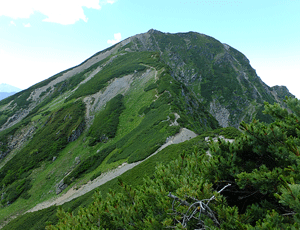 塩見岳東峰直下から、山頂をふり仰ぐ |