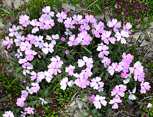 | タカネビランジ:ナデシコ科 「幕営禁止」のザレ場のあちこちに、タカネビランジ こんな所が好きなんだねえ・・・ |