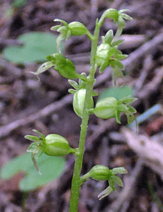 | コフタバラン:ラン科 上段の黄緑色は、花 下段の赤茶色は何?? 年を取ったから?? 茶色系もあるらしいので、それかも・・・?? |