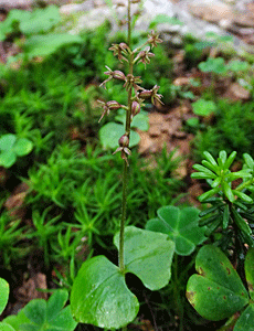 キソチドリ:ラン科 暗い樹林の中の花 |