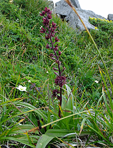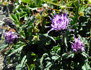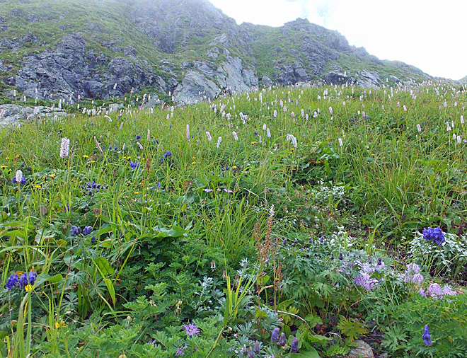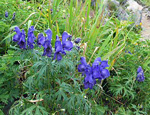 | キタダケトリカブトかな?:キンポウゲ科 背が低く、北岳のトラバース道に咲いているので、「キタダケトリカブト」だろう 翌日下山時に出会ったトリカブトの仲間は、背が高かった |