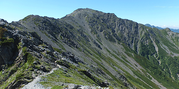 | 何度もここを通っているが、北岳山荘〜間ノ岳間に、こんな岩場があったなんて、記憶にない・・・ 北岳山荘からすぐ中白根、そしてすぐ間ノ岳…という感覚だった |