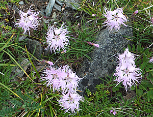 | タカネナデシコ:ナデシコ科 白っぽい花 |