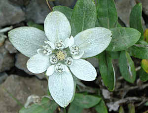 | ミネウスユキソウ:キク科 白っぽい部分は葉 『葉の表面に生える綿毛が、あたかも降り積もった雪のように見えることから名付けられたという』だって ホント、これらはまるで初雪・・・っていう感じ |
