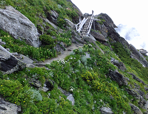 | 以前は、ザレの登りだったが、 今はその防止策が施されていて 歩きやすくなっていた |