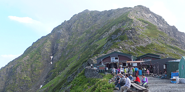 | 北岳山荘 いつもはこの小屋に泊まる 10:20 だが、今日はまだ10時ちょっとすぎたばかり こんなに早く小屋についても仕方がない で、肩ノ小屋に泊まる計画 おなかも空いた頃なので、「昼食になるようなものはありますか?」と尋ねると 「カップヌードル」「緑のたぬき」「赤いキツネ」がある・・・と う〜ん、油揚げが好きなので「赤いきつね」を頼んだ お湯は自分で入れ(どこまで入れたらいいのか初めてで分からず…ま、線まで入れればいいんだよね) 時計を見ながら5分待って、食べ始める お茶の無料が嬉しい 水も蛇口から出る 以前100円で購入した記憶があるが、今回は無料 日陰の椅子を選んで、大きな油揚げ入りうどんを食べた さて、ここから北岳肩ノ小屋まで、地図上では2時間ほどだが、ここからのトラバースは花が多い ゆっくり見ながら歩けば3時間かな?? |