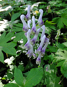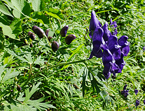 | トリカブトの仲間:キンポウゲ科 トラバース道でであった背の低い「キタダケトリカブト」と違って、背が高い |