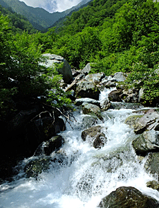 | 先程の涸れ沢が こんなに水量の豊富な急流となった |