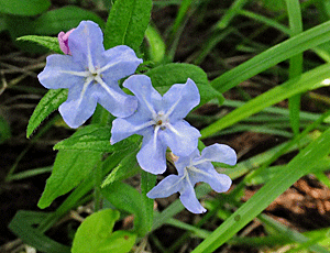 | ホタルカズラ:ムラサキ科 殆どが1本立ち 雄しべや雌しべは、中央にある穴の中にある?? |