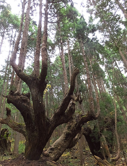 変わった形の古い杉の木が現れた |